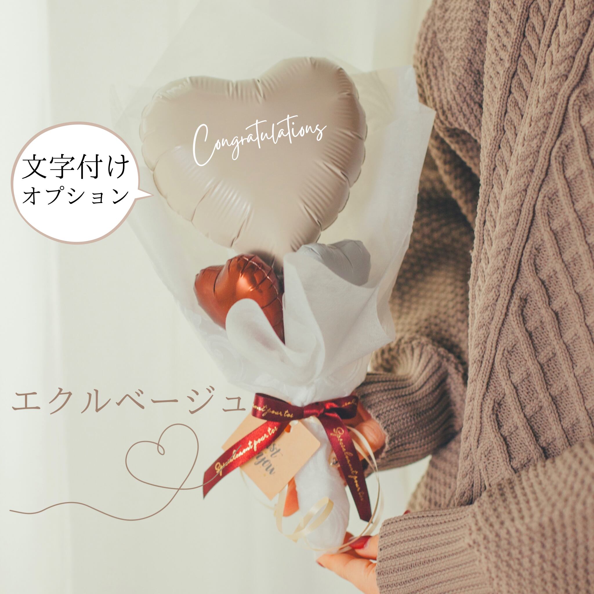 バルーンブーケ♡シンプルハート♡くすみカラー!!エクルベージュ